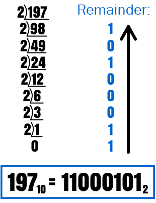 4. Repeat Step 3 and Step 4, record remainders from right to left, until the quotient becomes less than 2.